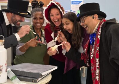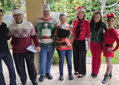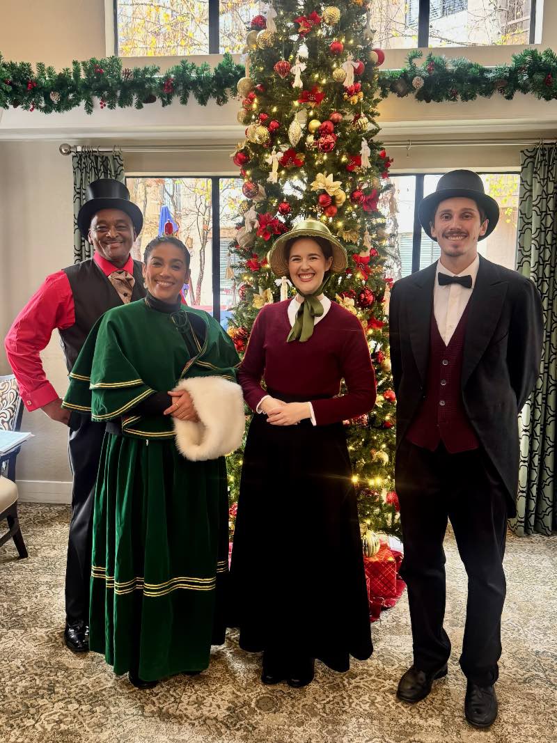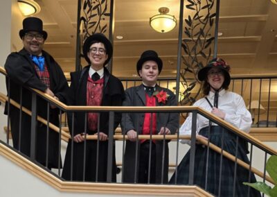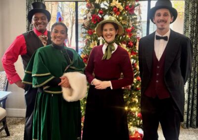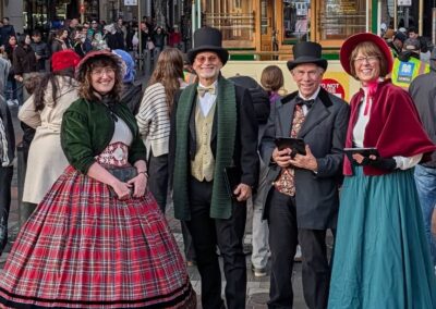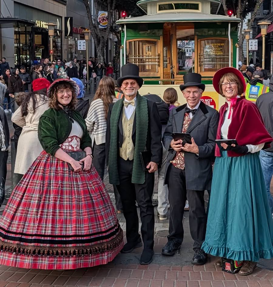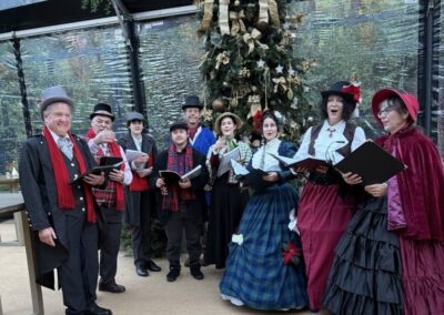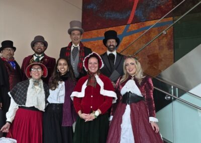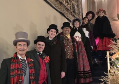 Our vibrant ensemble of over 100 singers—college students majoring in music, music teachers, directors, retirees, professional performers from San Francisco Opera and Symphony, and passionate vocalists who love spreading holiday cheer—delivers unforgettable performances in festive Dickensian-era costumes, ugly Christmas sweaters, or elegant attire tailored to your event. With a repertoire of over 60 traditional and contemporary holiday carols, plus custom arrangements by our resident composers, we create a warm, festive atmosphere for any occasion.